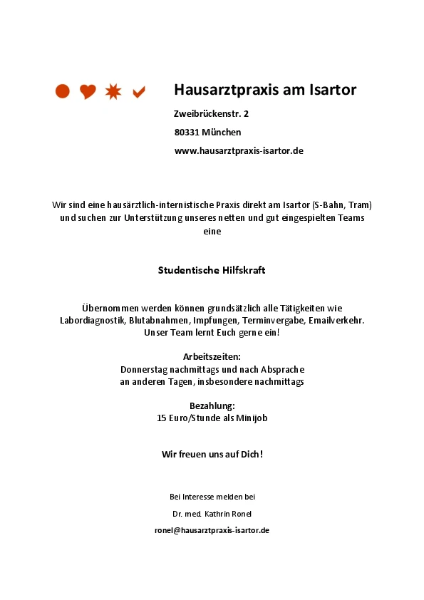 Hausarztpraxis am Isartor sucht studentische Hilfskraft (m/w/d)