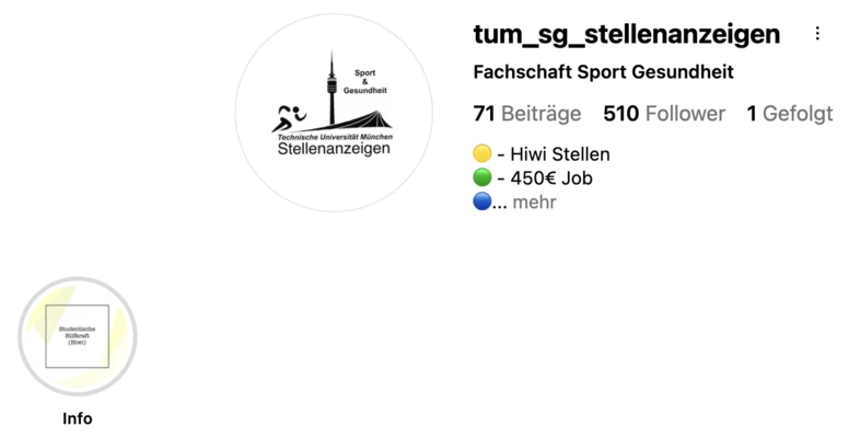 Instagram: Stellenanzeigen von der Fachschaft Sport und Gesundheit